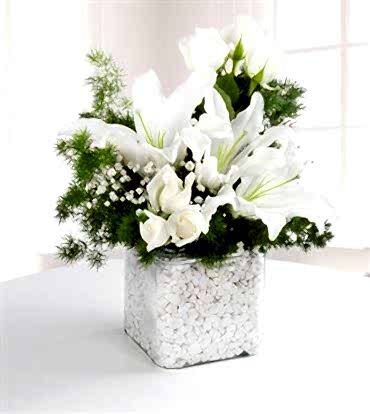 Kare Camda Beyaz Gül ve Lilyum Aranjmanı - 2.400,00 TL