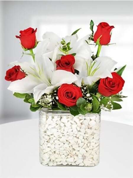Kare Camda lilyum gül aranjmanı - 1.800,00 TL