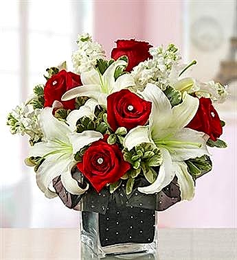 Kırmızı Gül - Beyaz lilyum ve şebboylardan oluşan aranjman - 1.800,00 TL