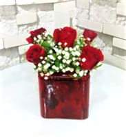 Elma Cam İçerisinde Şık Kırmızı Gül arajmanı