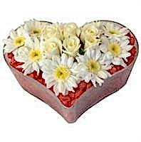 Kırmızı Gül - Beyaz lilyum ve şebboylardan oluşan aranjman