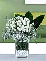 Kare Camda Beyaz Gül ve Lilyum Aranjmanı